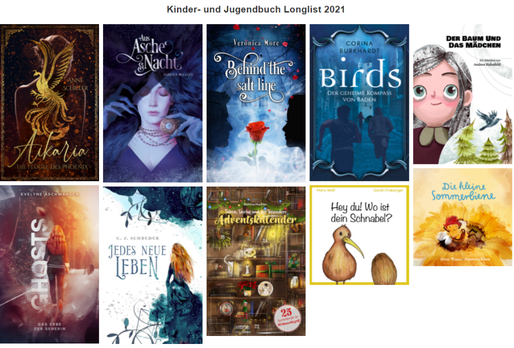 Der Selfpublishing Buchpreis wird jedes Jahr an die besten „verlagslosen“ – also in Eigenregie herausgebrachten – Titel vergeben. Eine Fachjury prüft alle Einsendungen auf Herz und Nieren: Soll heißen, auf Inhalt, Schreibstil, Cover, Fehlerfreiheit, Qualität, … Unter 1.138 Einsendungen haben es zehn Titel pro Kategorie (Bellestrik, Kinder- und Jugendbuch, Sachbuch) auf die Longlist 2021 geschafft.