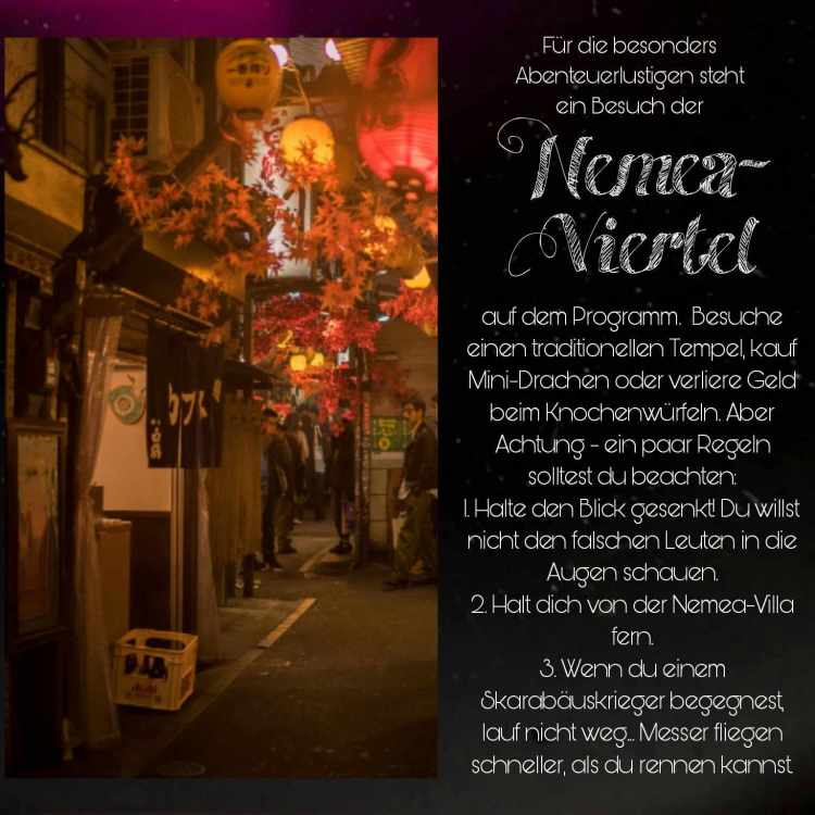 In Band 2 (Love so Bitter & Sweet) geht es für die Protagonist*innen an weitere spannende Orte. Insbesondere lernen sie die Clans besser kennen (es geht in die Klauen-Viertel und den Opalsitz) und betreten zum ersten Mal den Magnolia Temple: